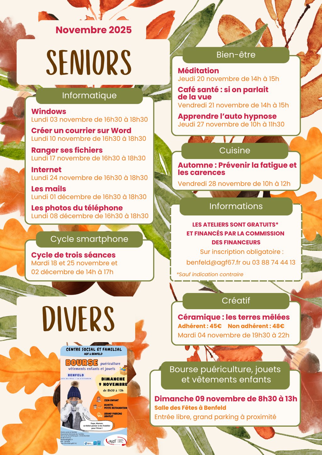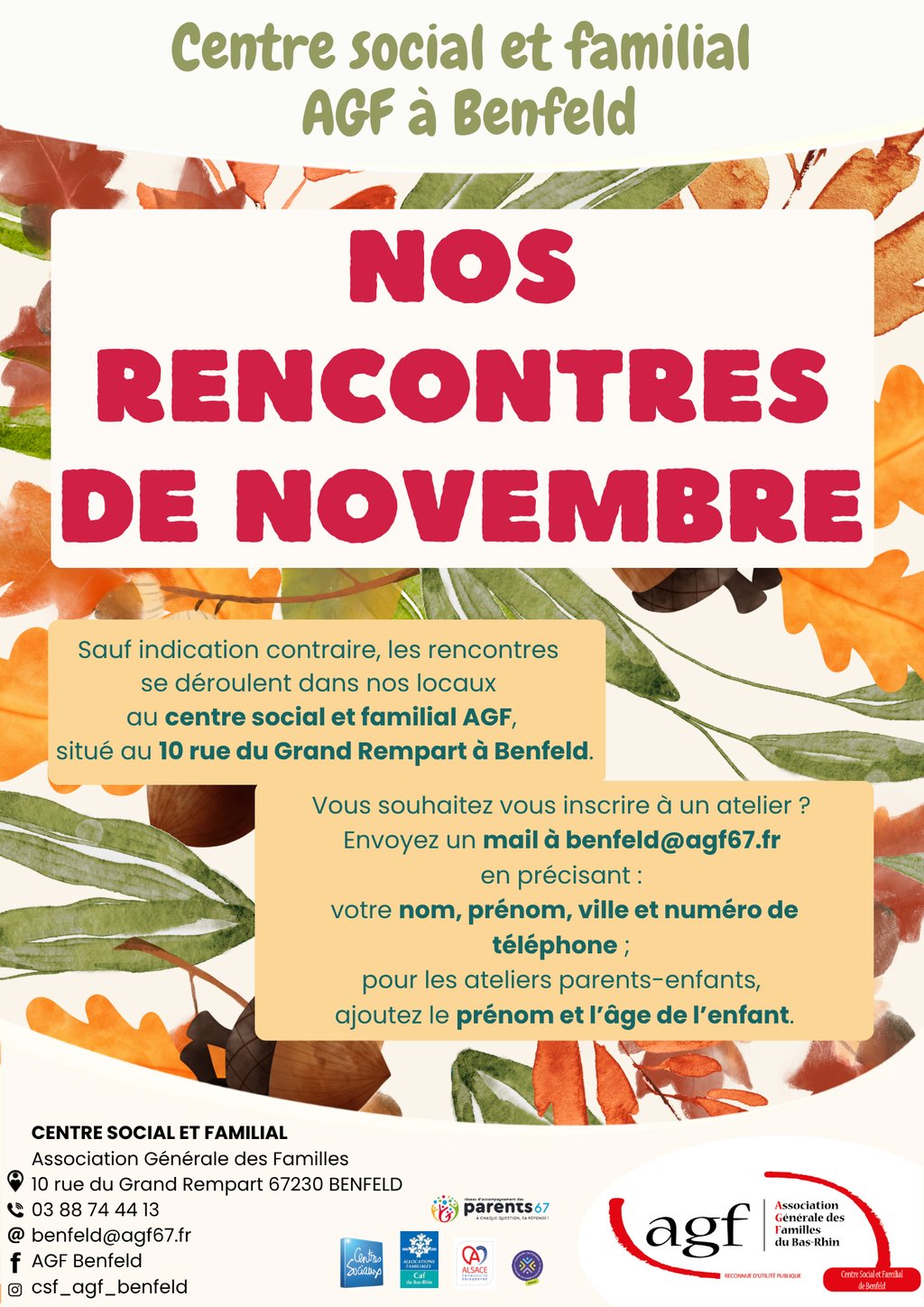 🔵 Inscription obligatoire aux ateliers : benfeld@agf67.fr ou 03 88 74 44 13