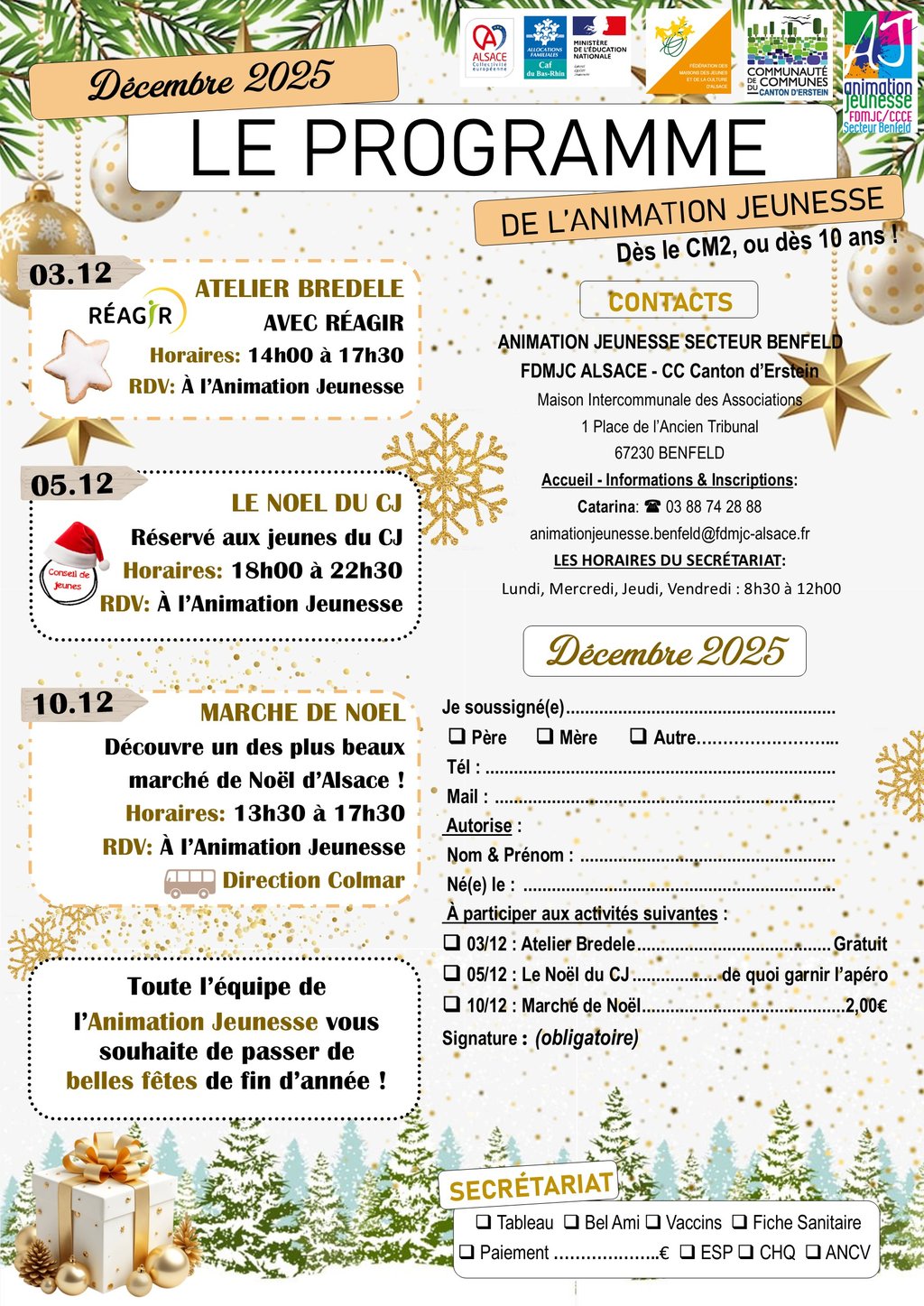 Le programme des activités du mois de Décembre 2025 est disponible, pour les jeunes âgés de 10 à 18 ans du secteur Benfeld !
