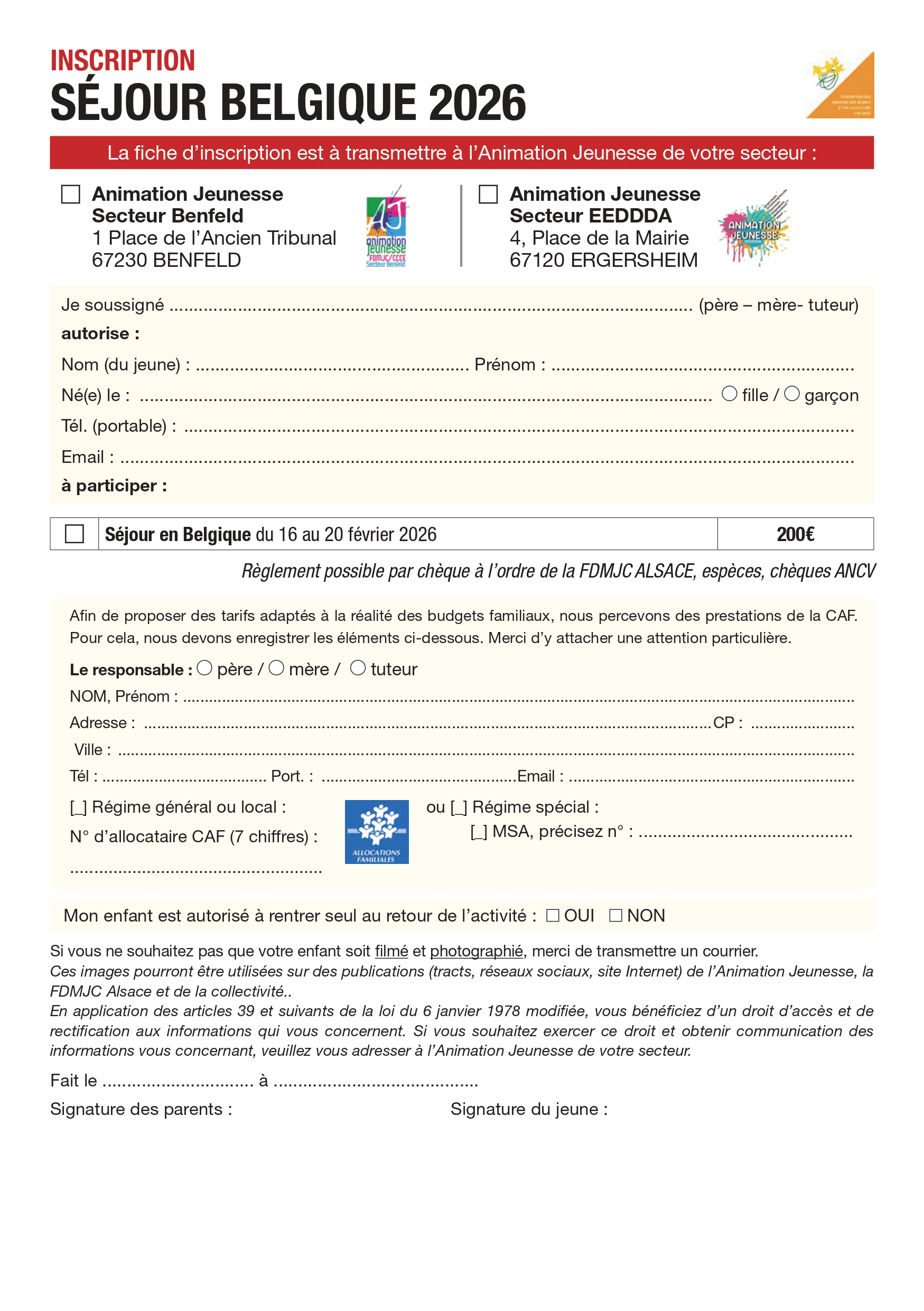 Les Animations Jeunesse de Benfeld et d'EEDDDA organisent un séjour lors des vacances d’hiver 2026 ! Les inscriptions sont ouvertes dès aujourd'hui ! Vous trouverez ci-dessous quelques informations :