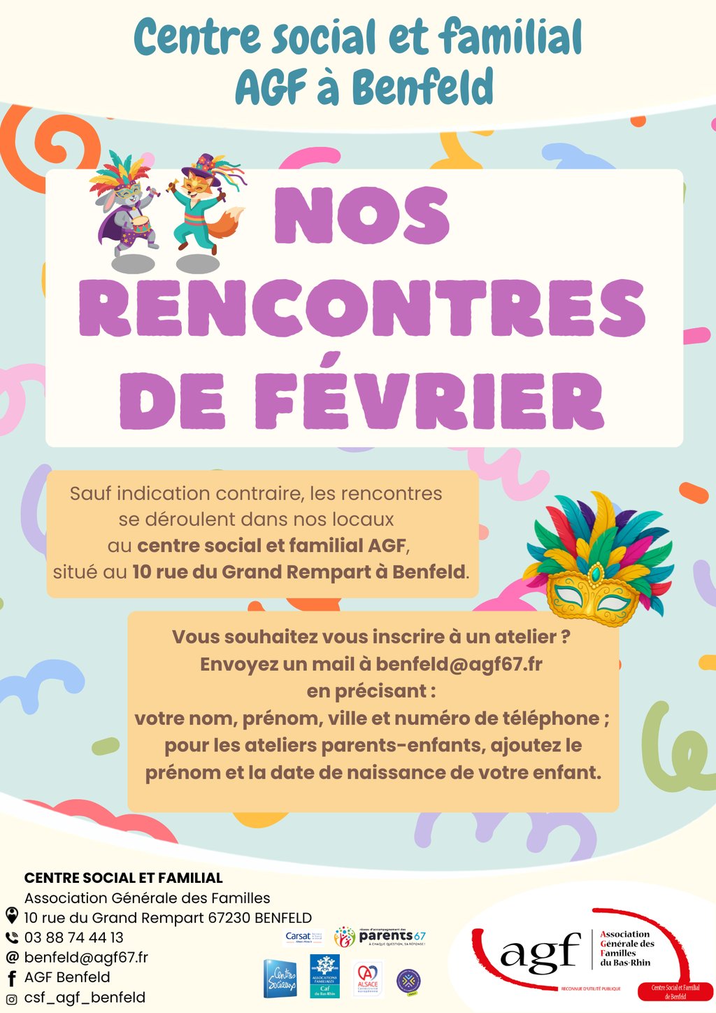 Chaque mois, découvrez le programme des ateliers proposé par le centre social et familial de l'AGF à Benfeld ! 👩🍳🧺