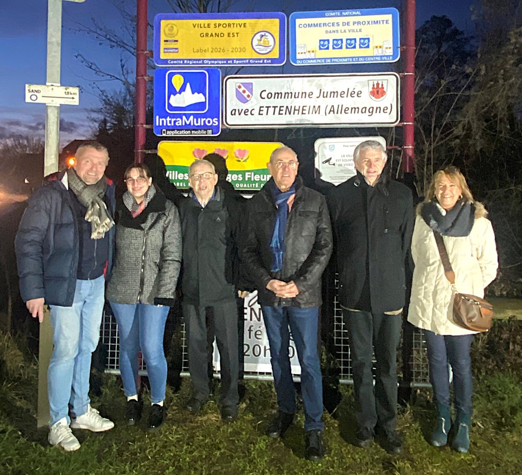 La Ville de Benfeld a eu le plaisir d’organiser, le mardi 3 février 2026, le dévoilement officiel de la plaque « Ville Sportive Grand Est » à l’entrée de la commune, côté plan d’eau, en présence des représentants du mouvement sportif départemental :