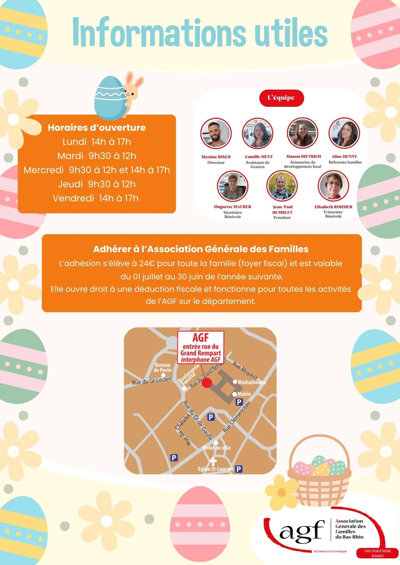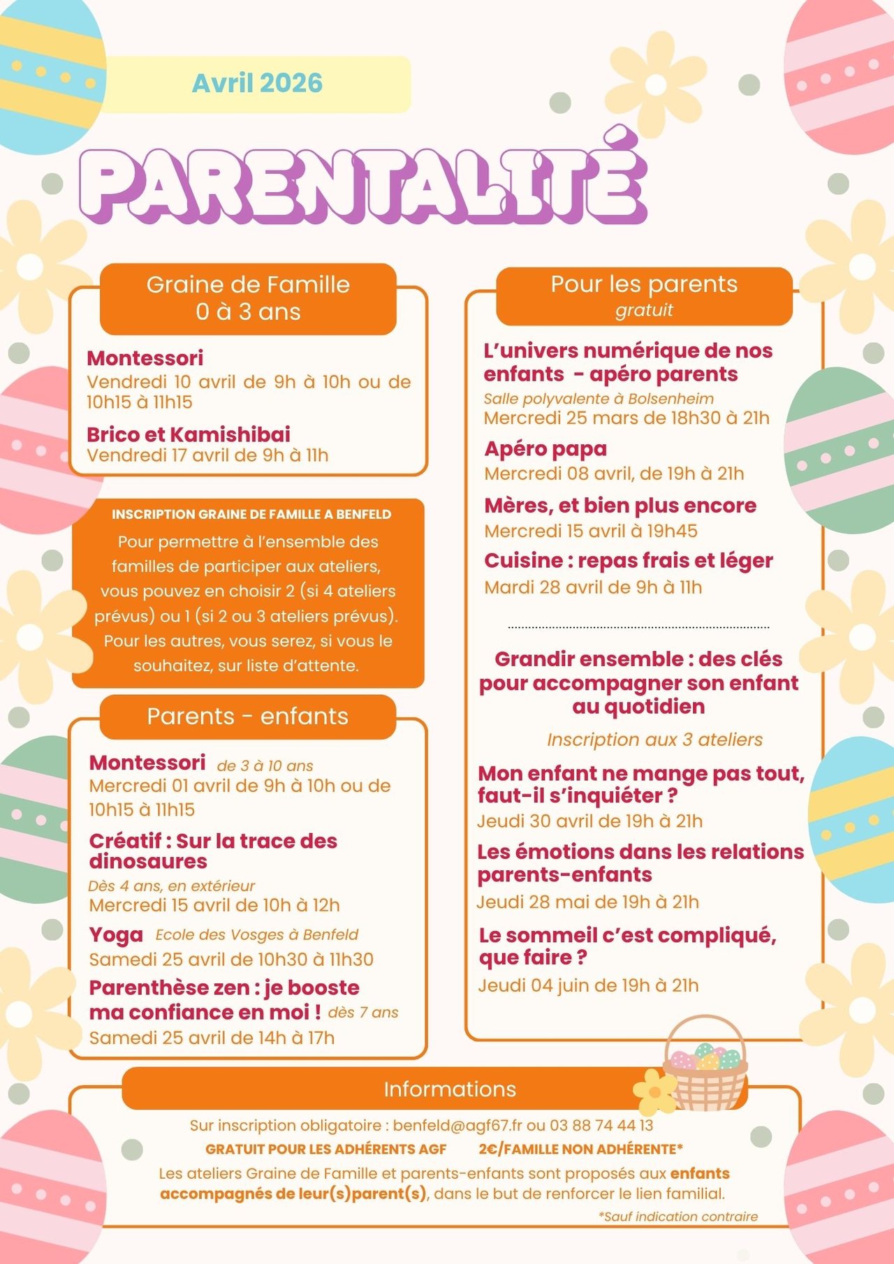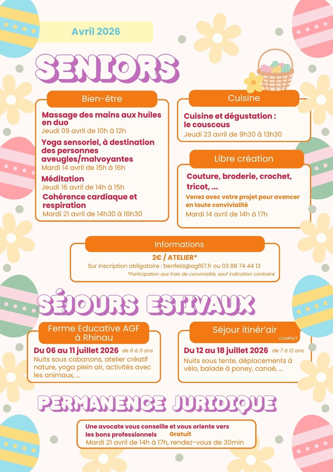 đ” Inscription obligatoire aux ateliers : benfeld@agf67.fr ou 03 88 74 44 13Â