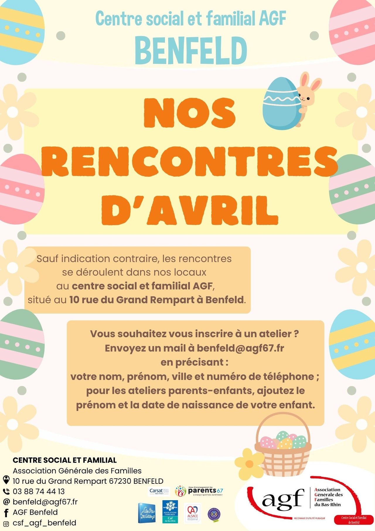 Chaque mois, dĂ©couvrez le programme des ateliers proposé par le centre social et familial de l'AGF Ă Benfeld ! đŁđ©âđł