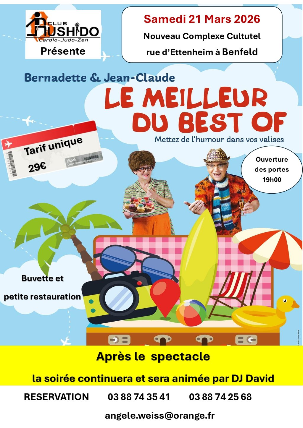 Ouverture des portes à 19h00 – spectacle à 20h30, suivi d’une soirée animée par DJ David !