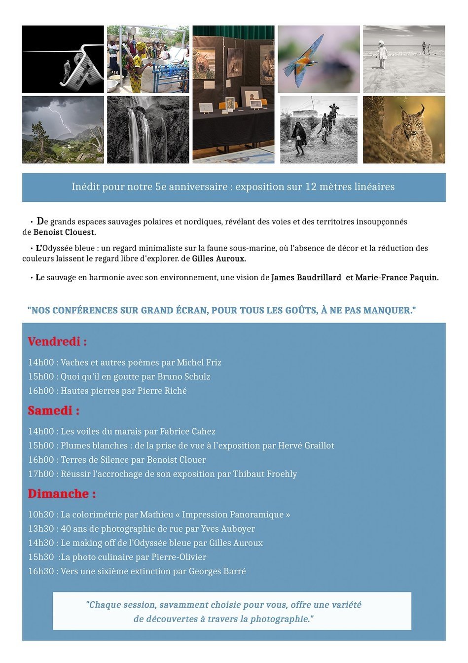 Devenu au fil des années un temps fort culturel incontournable, le festival revient avec une ambition renouvelée : faire de la photographie une expérience vivante, accessible et profondément humaine, à vivre en famille, entre amis ou en solo.